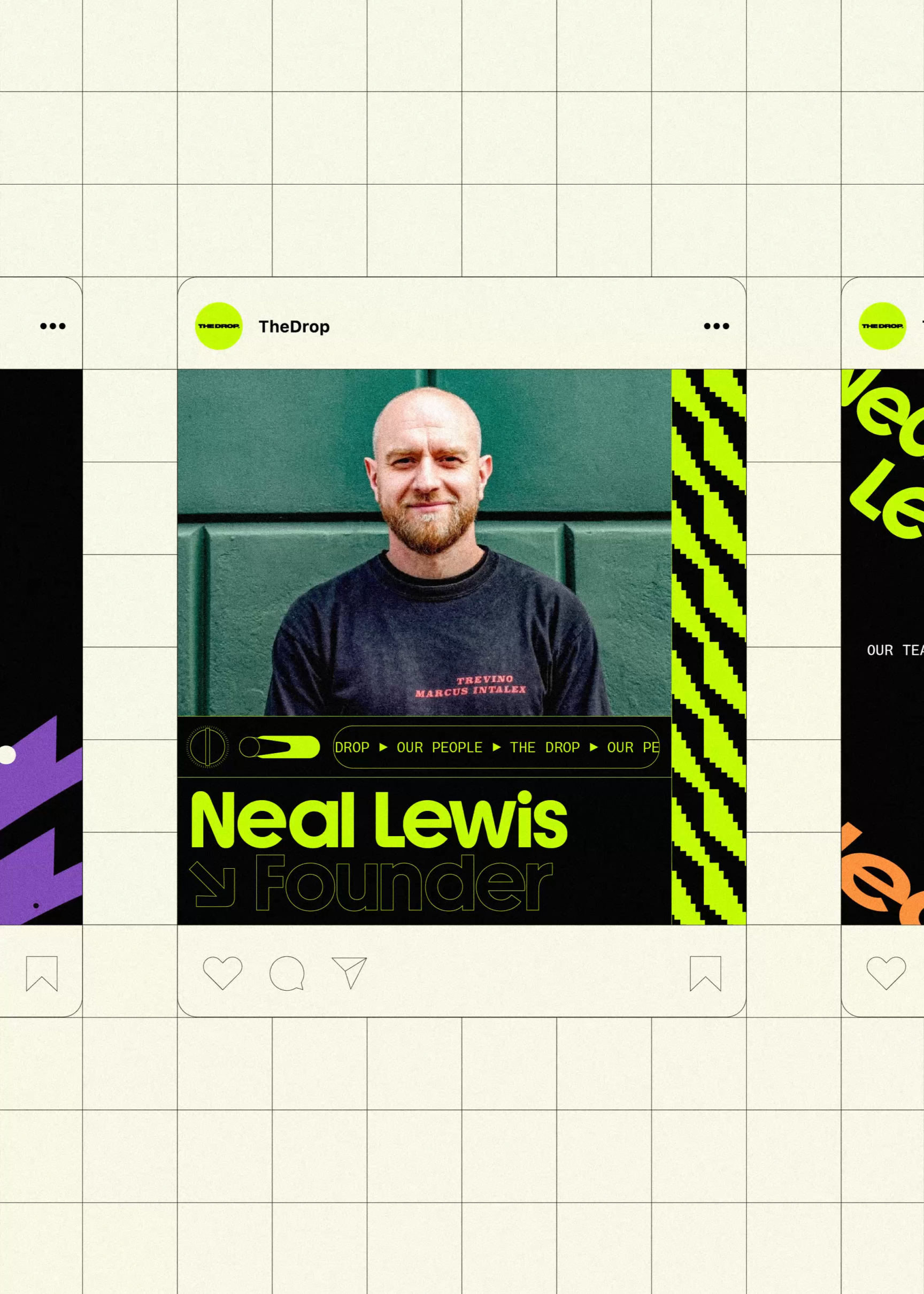 Signalling new levels for the Drop’s visual and verbal voice. We’ve created a refreshed visual and verbal language to amplify the Drop’s next stage of growth, giving them a clear, ownable identity that didn't have to rely on — and wasn't dictated by — imagery from their clients. In other words, pitch-perfect branding.