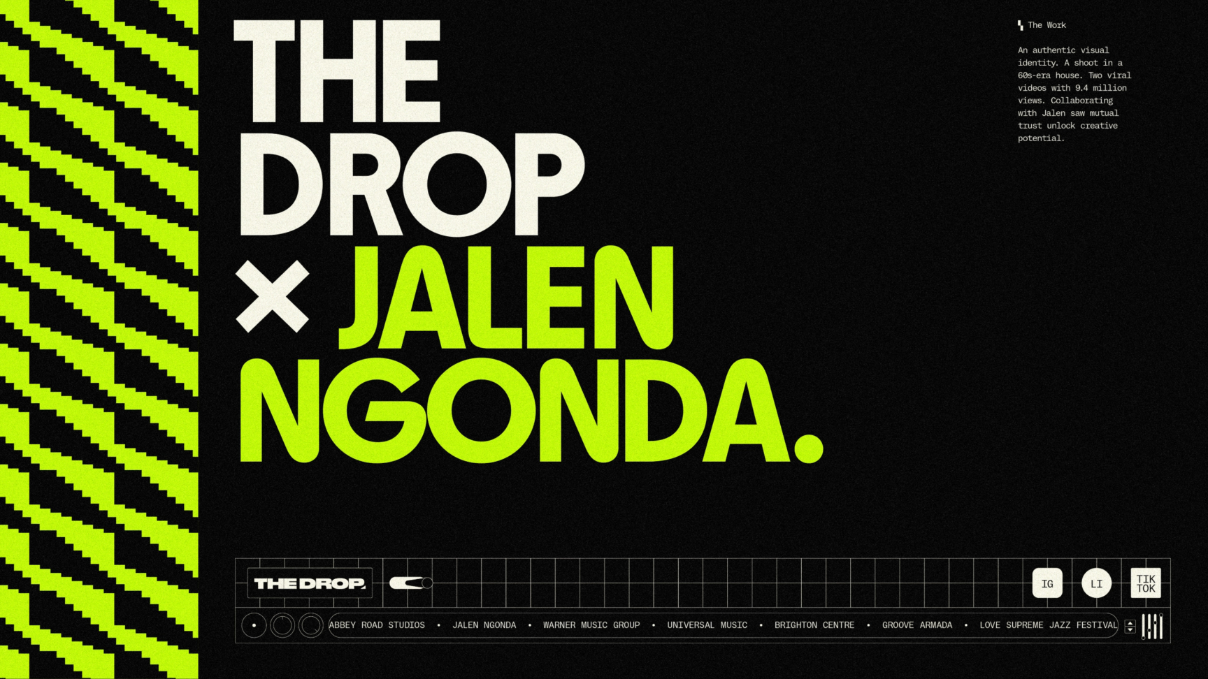 Many service businesses trip into the same trap. One in which the identity is led by the service, and not the other way round. The business mirrors the artist’s work. The brand identity is diluted. The distinctive voice is lost. That’s where the Drop — a music social media agency based in Brighton that works with musicians, events, labels and more — found themselves. The Drop needed a visual and verbal language that was their own. One that still championed the artist. One that gave them their own voice in the conversation.
