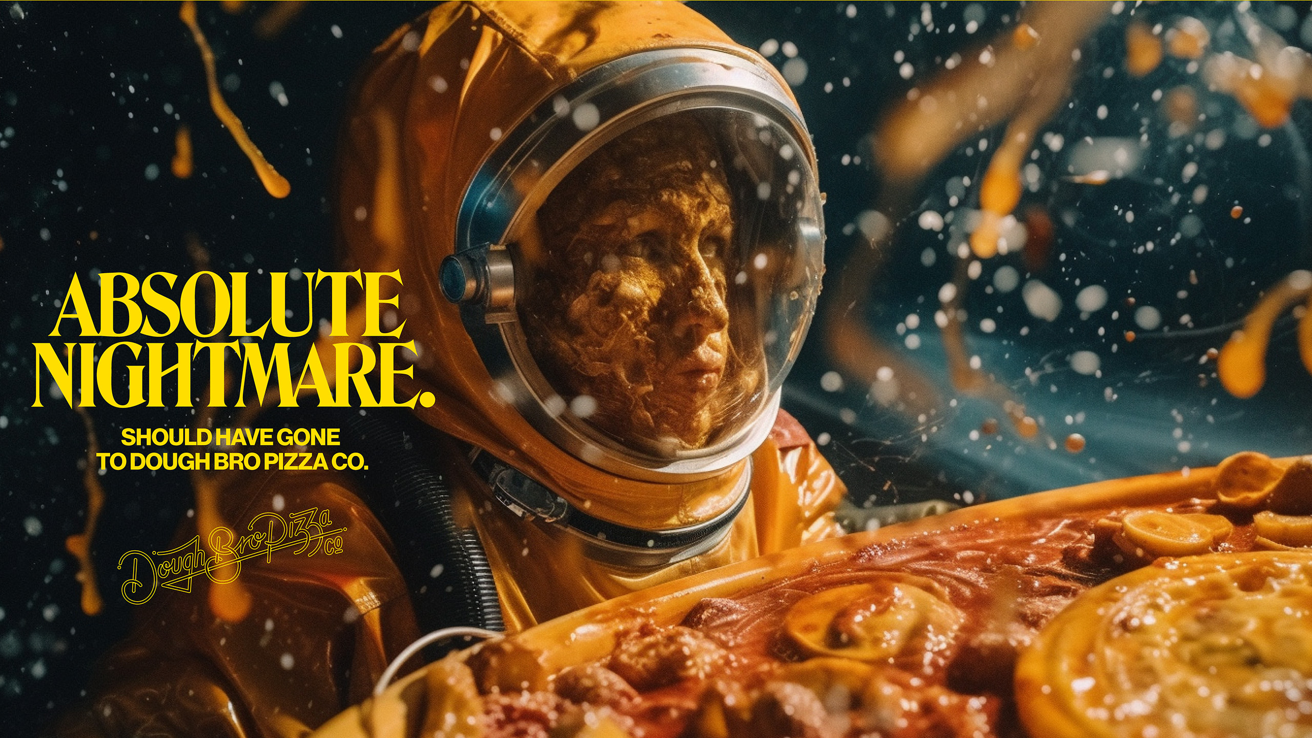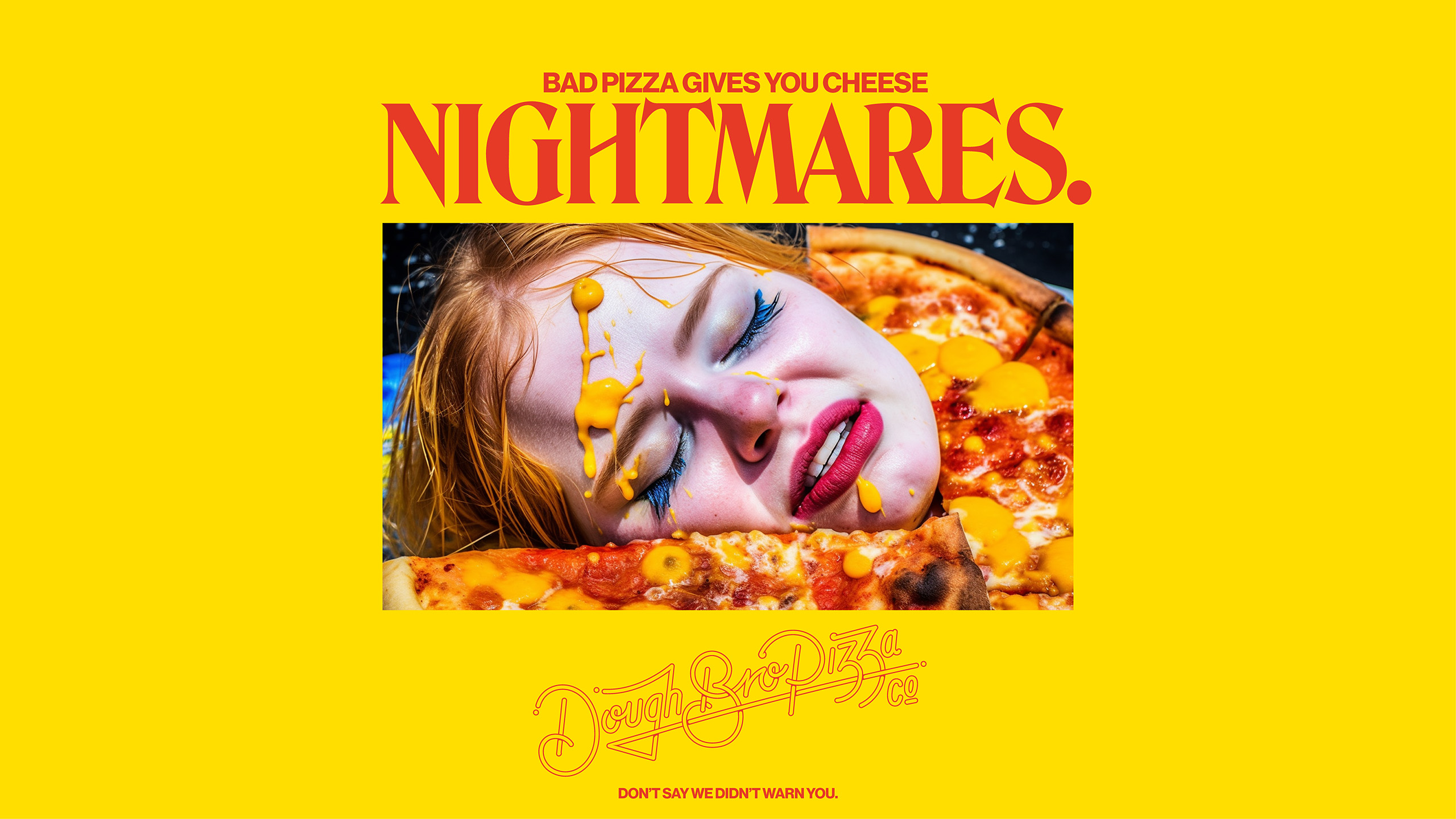 While visualising that good pizza – obvs the stuff that DoughBro Pizza Co makes — gives you cheese dreams, we utilised Midjourney to help us warn people of the perils of bad pizza. Enter cheese nightmares.
