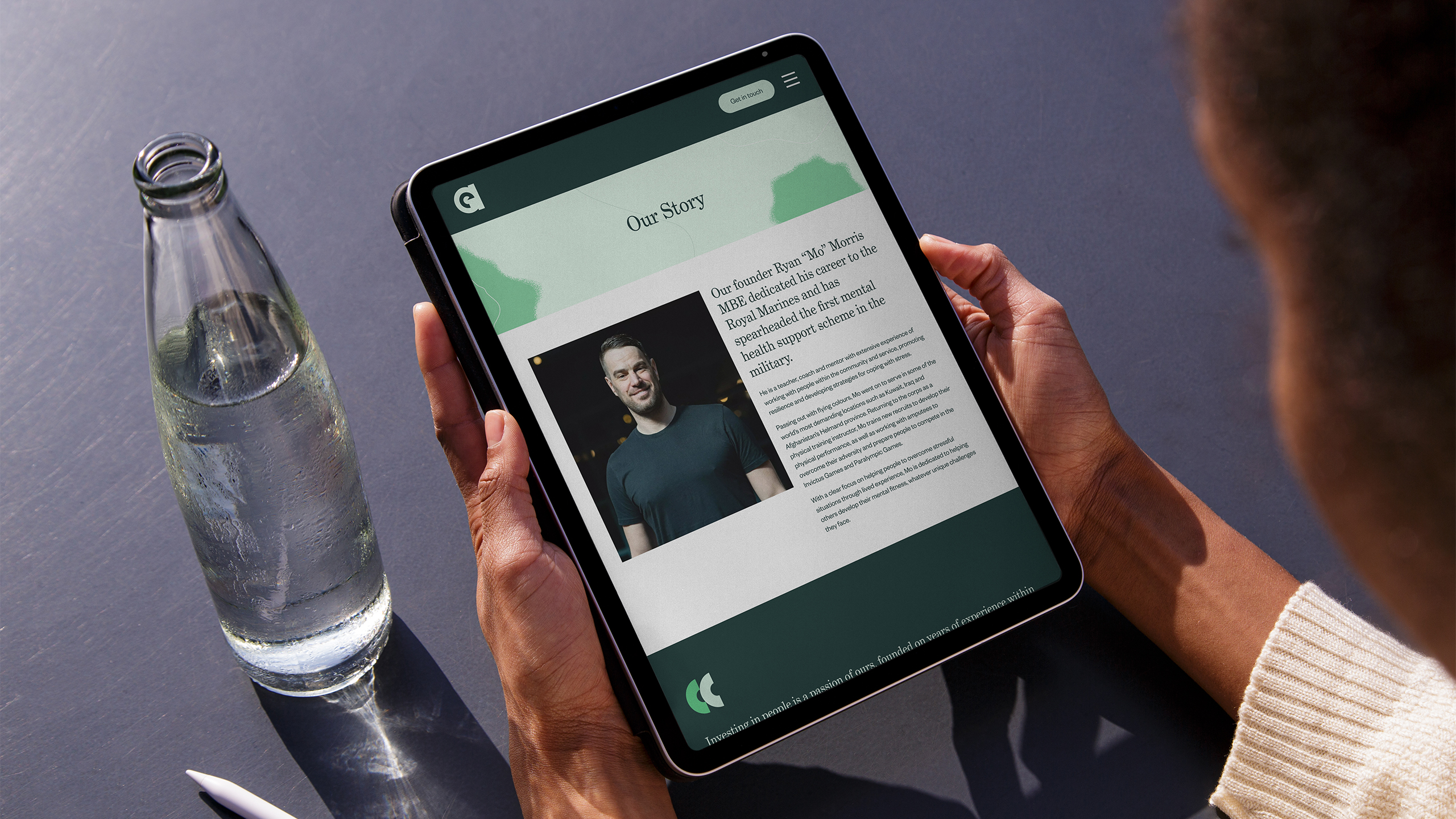 In reality, practice doesn’t always make perfect, but it can make you more resilient to the situations you face. Just as practising acts of resilience builds up layers of experience, we built the brand’s visual identity through a layered approach to defences. This utilised the military influence of navigation, equipping the brand with a deconstructed compass as a key visual device. Cool, calming and deep green colours personify positivity and a connection to the natural world, where people are directed to moments of calm.