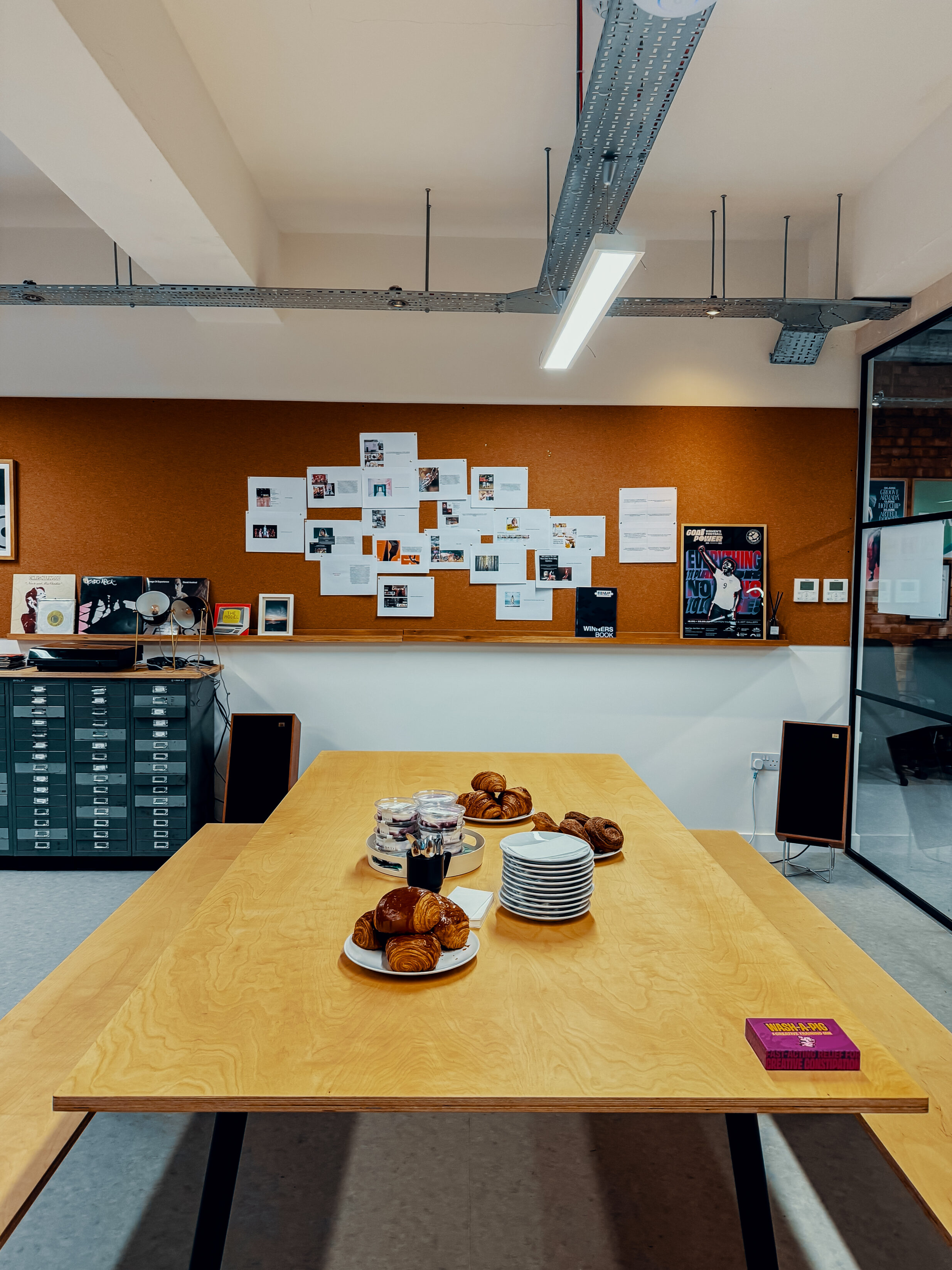 On our core studio days, this floor is bursting with energy. Beers round the collab space, ideas pinned on the wall and records on. The rest of the time, it’s yours. A fully adaptable environment where strategies are born and friendships forged. Our ground floor is built for collaboration, focus, and connection.